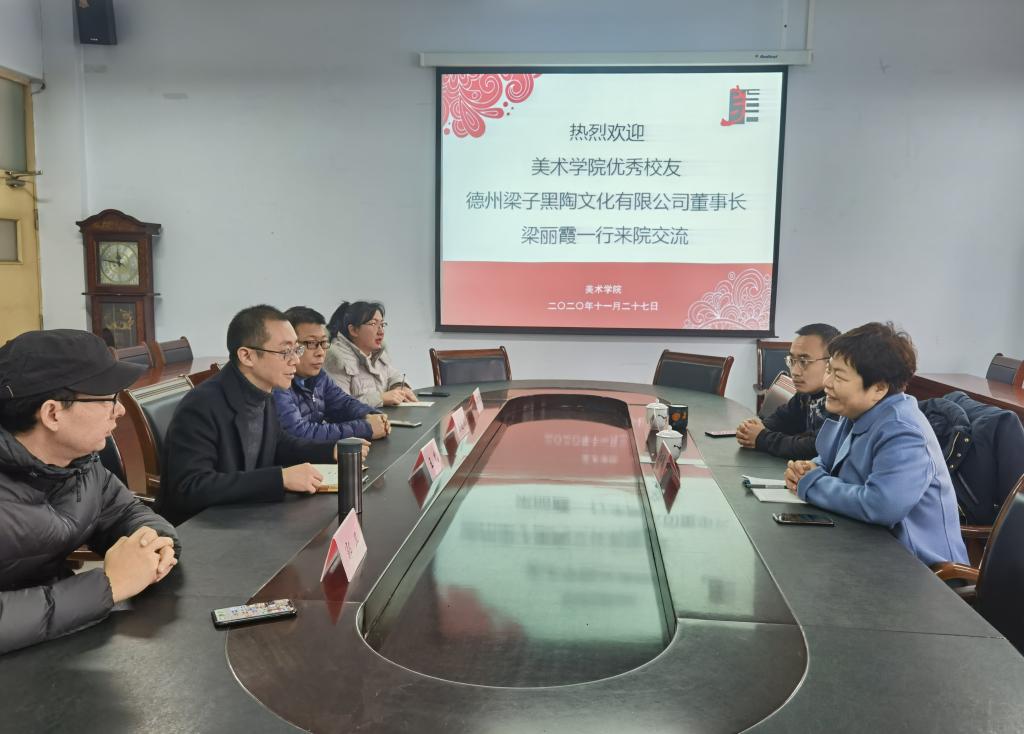 梁丽霞董事长一行参观了2017级美术学专业的木版画课业作品展,对学生在作品中展现的基本功和创造力表示肯定。座谈中,双方就校企合作、协同育人、课程设置、创新创业等问题展开讨论。梁丽霞董事长表示,太阳成城集团tyc234cc多年来在专业教学中取得了骄人成绩,特别是在应用型人才的培养方面,为服务地方起到重要作用。双方就如何以实践能力为导向建立教学体系进行了深入探讨,决定以黑陶项目为试点,开展项目式教学模式改革。双方商定,今后将继续加强校企互动,全面推进合作,共同促进高质量发展。
