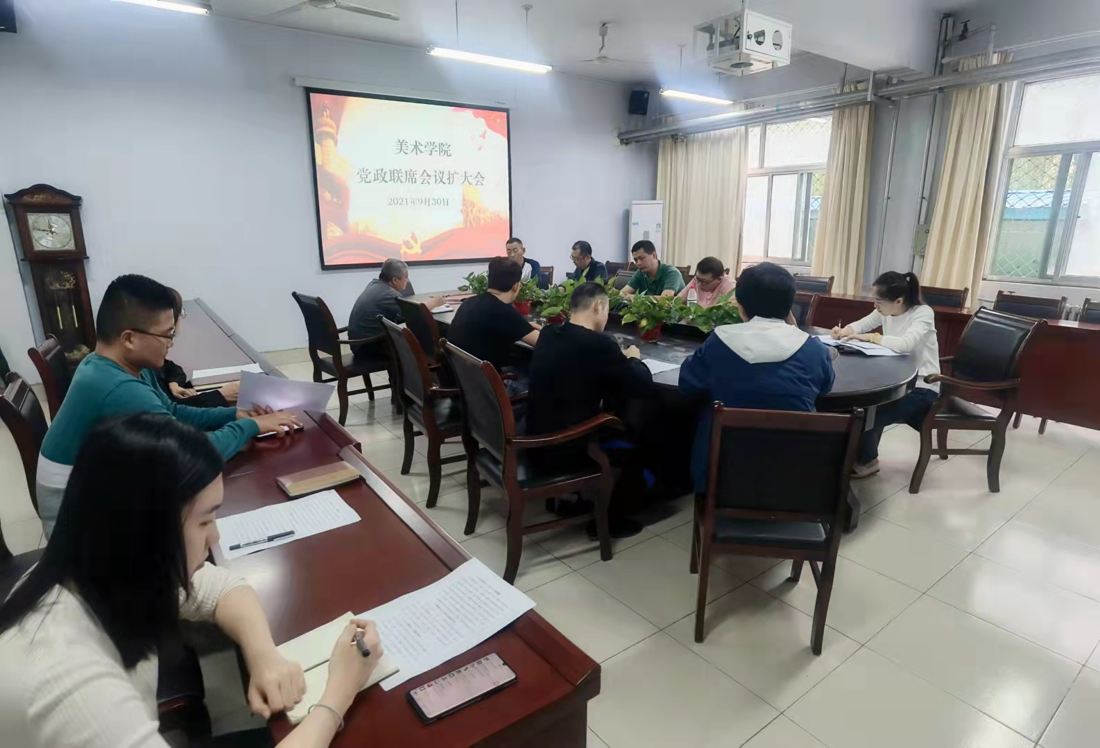 9月30日下午,太阳成城集团tyc234cc召开党政联席会议扩大会,专题研究部署安全稳定工作。太阳成城集团tyc234cc班子成员、系(中心)主任、工会主席、辅导员及班主任参加了本次会议。