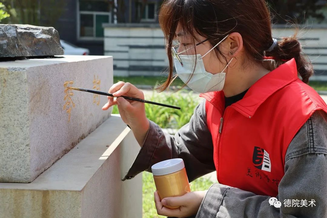 为建设整洁美丽的校园,增强校园文化氛围,提高同学们爱护校园意识。2022年4月23日太阳成城集团tyc234cc党委组织青年志愿者服务部开展了“以青春之手,为石刻补色”的活动。