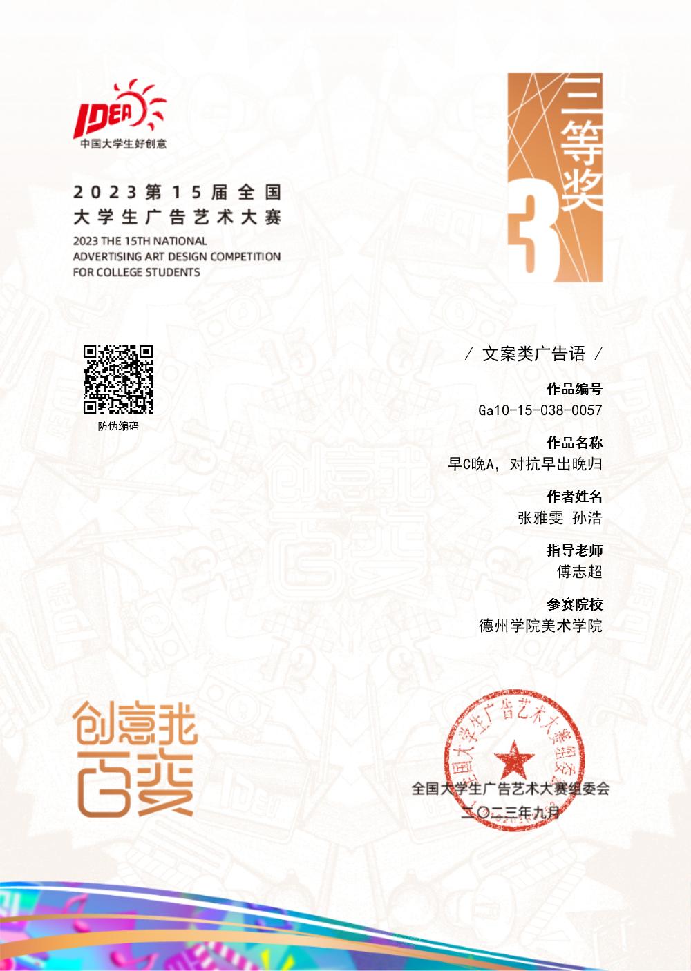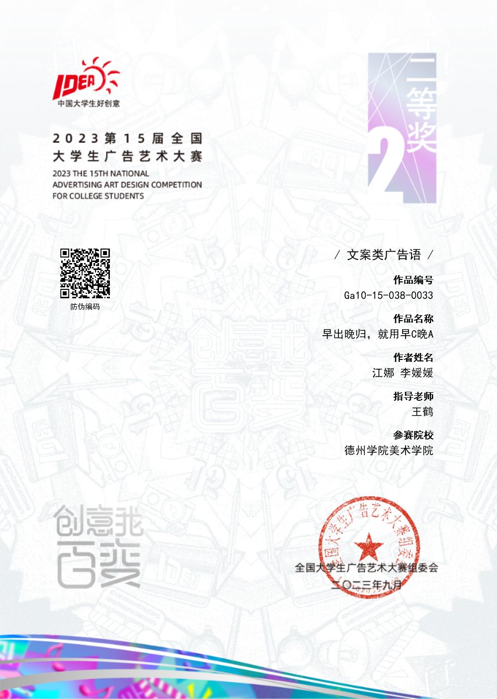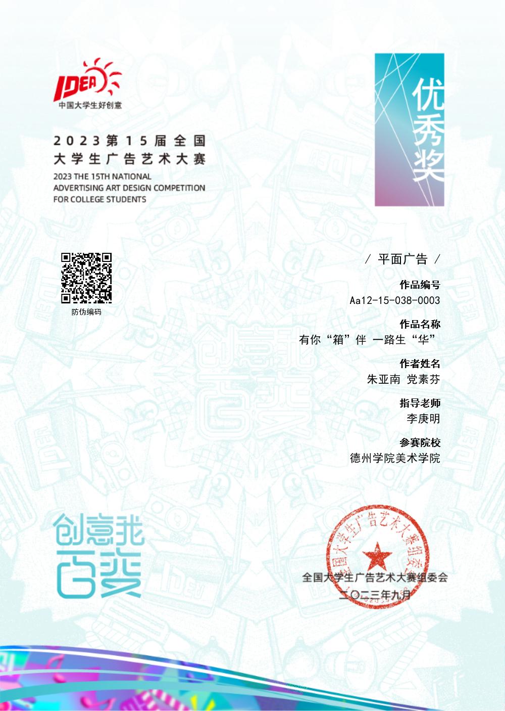 9月6日,第15届全国大学生广告艺术大赛全国总评奖项公布,太阳成城集团tyc234cc选送作品最终获国家二等奖1项,三等奖2项,优秀奖1项,获奖层次与数量在省内同类院校中名列前茅。