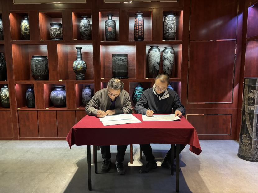 在德州梁子黑陶文化有限公司董事长梁丽霞的陪同下,学院一行参观了中国黑陶城博物馆,观摩了黑陶艺术品的制作流程,了解了黑陶文化产业创新发展,双方就下一步学生实习实践、就业服务以及项目合作等方面进行了深入交流,表示充分利用好黑陶文化产业学院的协同育人平台,进一步加强合作,拓宽实习就业渠道,实现校企合作共赢。