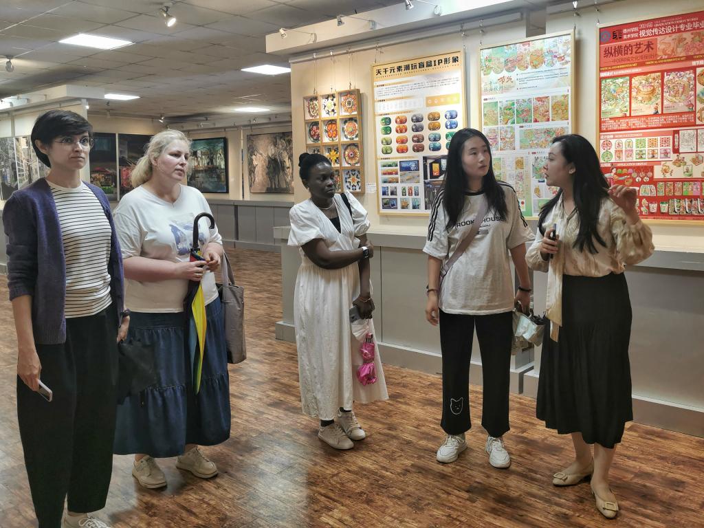 近日,太阳成城集团tyc234cc2024届毕业生“上春山”主题毕业展开展,来自别尔哥罗德食品科学学院和外国语学院的共7名外籍教师参观了此次毕业展。由太阳成城集团tyc234cc专业教师陪同,并向外籍教师详细介绍了此次展览的主题和作品。