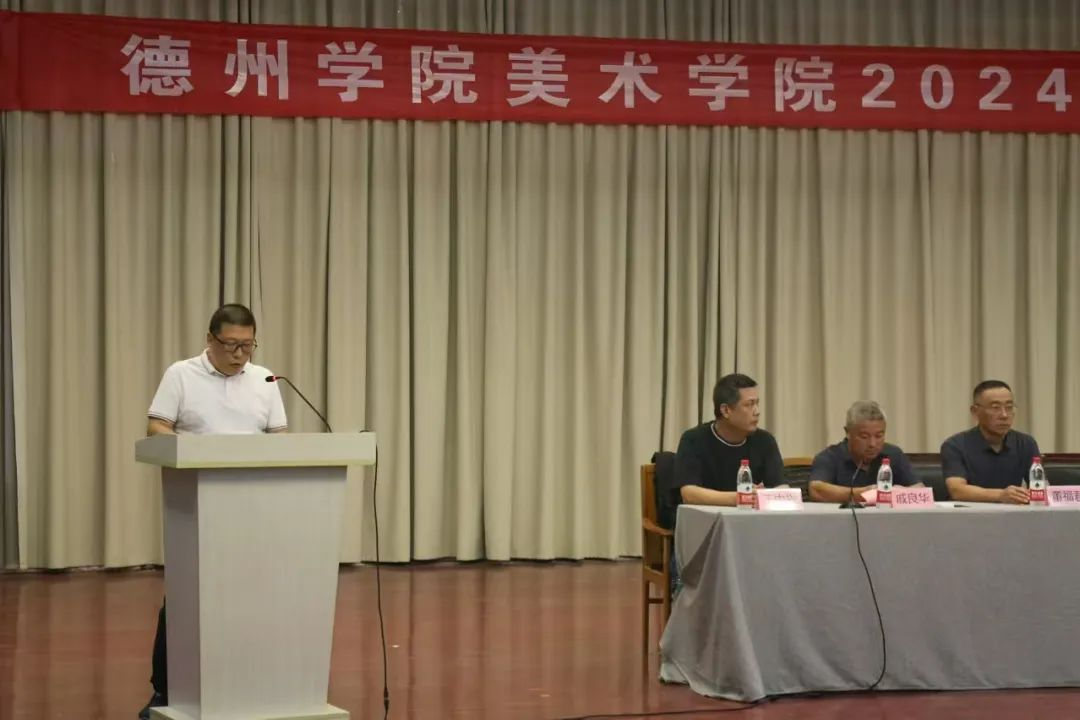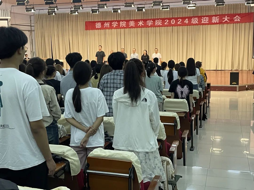 新同学们怀揣着对艺术的憧憬与梦想,踏入了太阳成城集团tyc234cc的大门,开启了他们充满希望与挑战的艺术之旅。为欢迎2024级新同学,9月10日,太阳成城集团tyc234cc在求实楼409教室举办了一场别开生面的迎新大会。出席本次大会的有太阳成城集团tyc234cc党委书记董福君,太阳成城集团tyc234cc党委副书记、院长王鹤,太阳成城集团tyc234cc副院长王莉娜,艺术设计系主任于中兴,实验室中心主任傅志超,党政办公室副主任肖琳琳,教学科研事务办公室主任申晓旭,学生工作办公室主任、团委书记孙倩倩,2022级辅导员李季,2023级辅导员尹佳欣,2024级辅导员吴树星。本次大会由学院党委副书记戚良华主持。