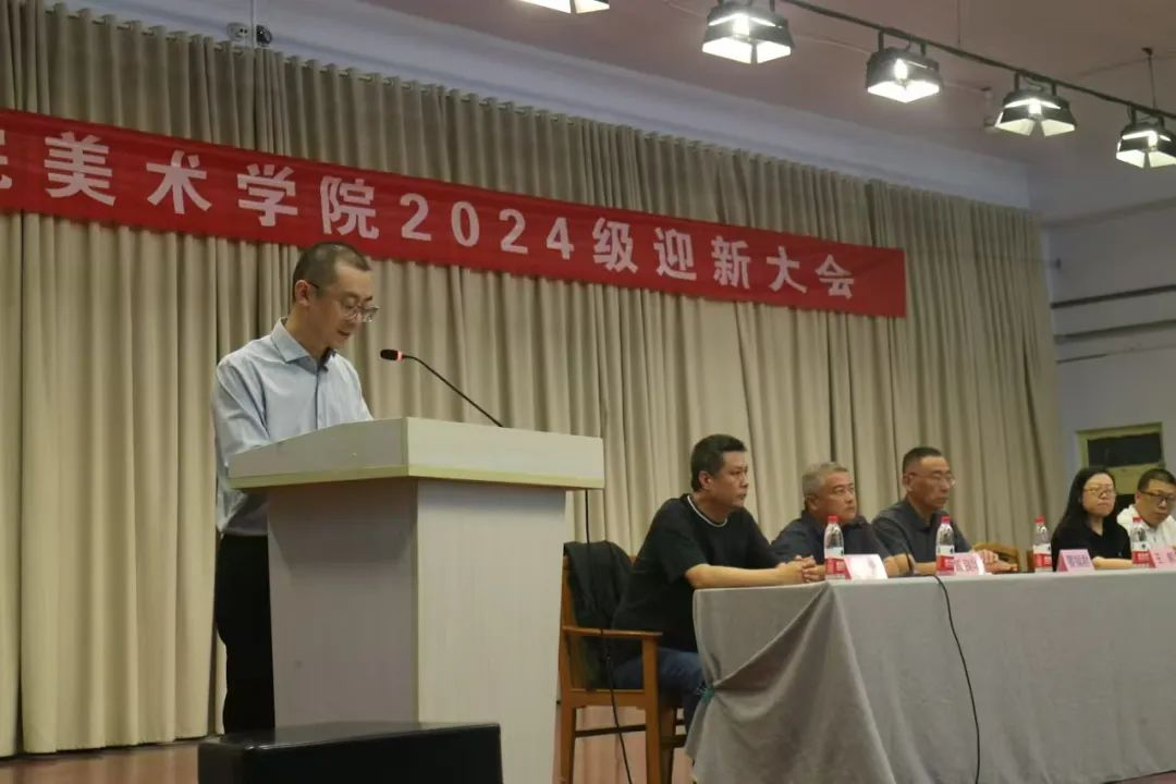 首先,太阳成城集团tyc234cc党委副书记、院长王鹤发表了热情洋溢的致辞,并对新同学的到来表示最热烈的欢迎。他介绍了学院的历史、学院的氛围和优良的教风学风,并为大家提出了三点建议:一是在崇德尚艺的实践中深刻认识“美”,用作品弘扬真善美,讲好中国故事、传播中国声音。二是在服务社会的实践中不懈追求“美”,不断提升自己的专业素养和综合能力,不断学习新知识、新技能,保持对艺术领域的敏锐洞察力和创新精神。三是在守正创新的实践中勇于创造“美”,要在坚守传统的基础上,勇于创新,用跟上时代的精品力作开辟文艺的新境界。