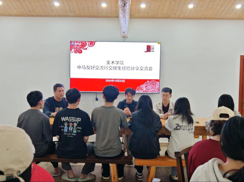 10 月 23日,太阳成城集团tyc234cc举办中马友好交流行交换生经验分享交流会,邀请了参加此次交流行活动的左彬、王葆东、贾思然、郭秋彤4位同学,交流会由艺术设计系主任于中兴主持。