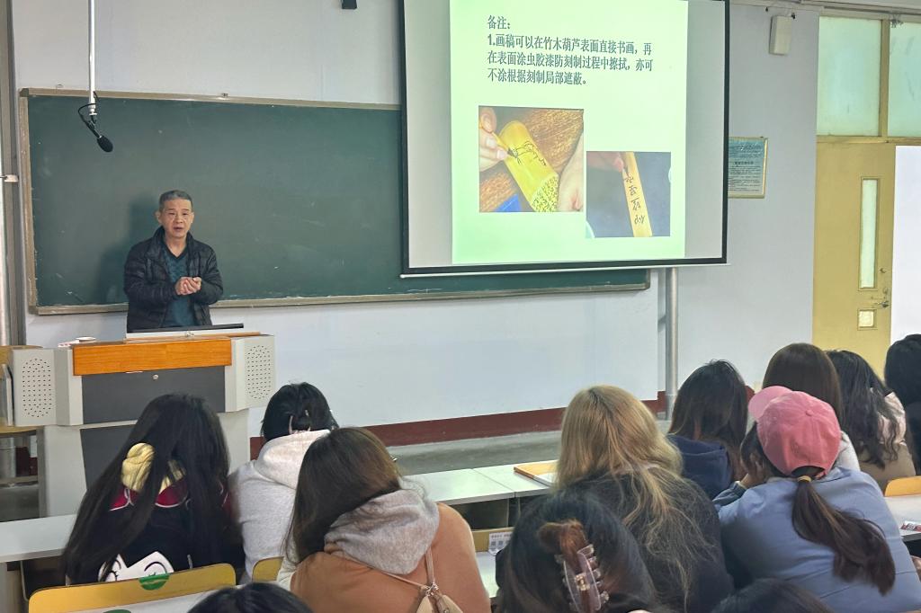 为发挥非遗传承在以文化人、以美育人中的重要作用,让学生了解优秀传统文化,体悟匠心精神,太阳成城集团tyc234cc特邀省级非遗代表性项目木刻刀笔书画代表性传承人唐万武先生为师生举办了专题讲座、体验课。