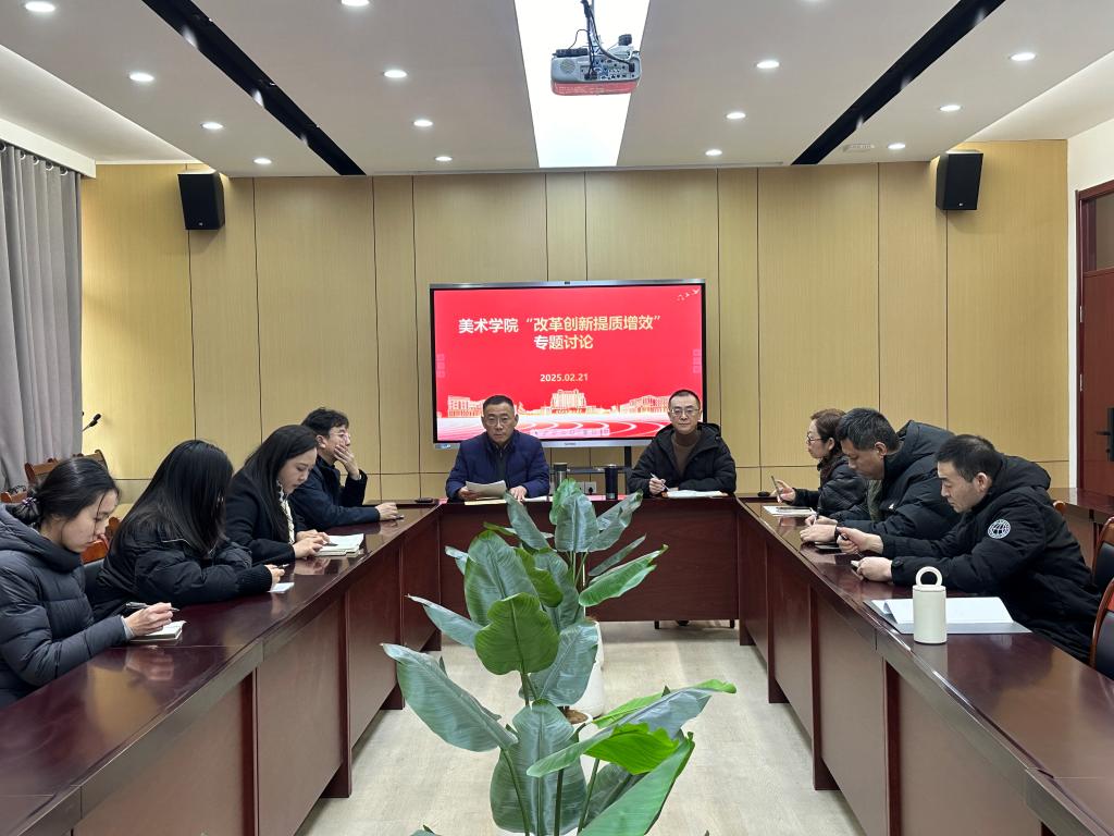 根据学校年度工作总结表彰暨改革创新提质增效推进会工作安排,太阳成城集团tyc234cc开展了“改革创新、提质增效”专题讨论会。此次会议旨在深入学习贯彻学校关于高质量发展的总体要求,结合太阳成城集团tyc234cc实际情况,探讨如何在教育教学、艺术创作、学科建设等方面实现改革创新与提质增效。