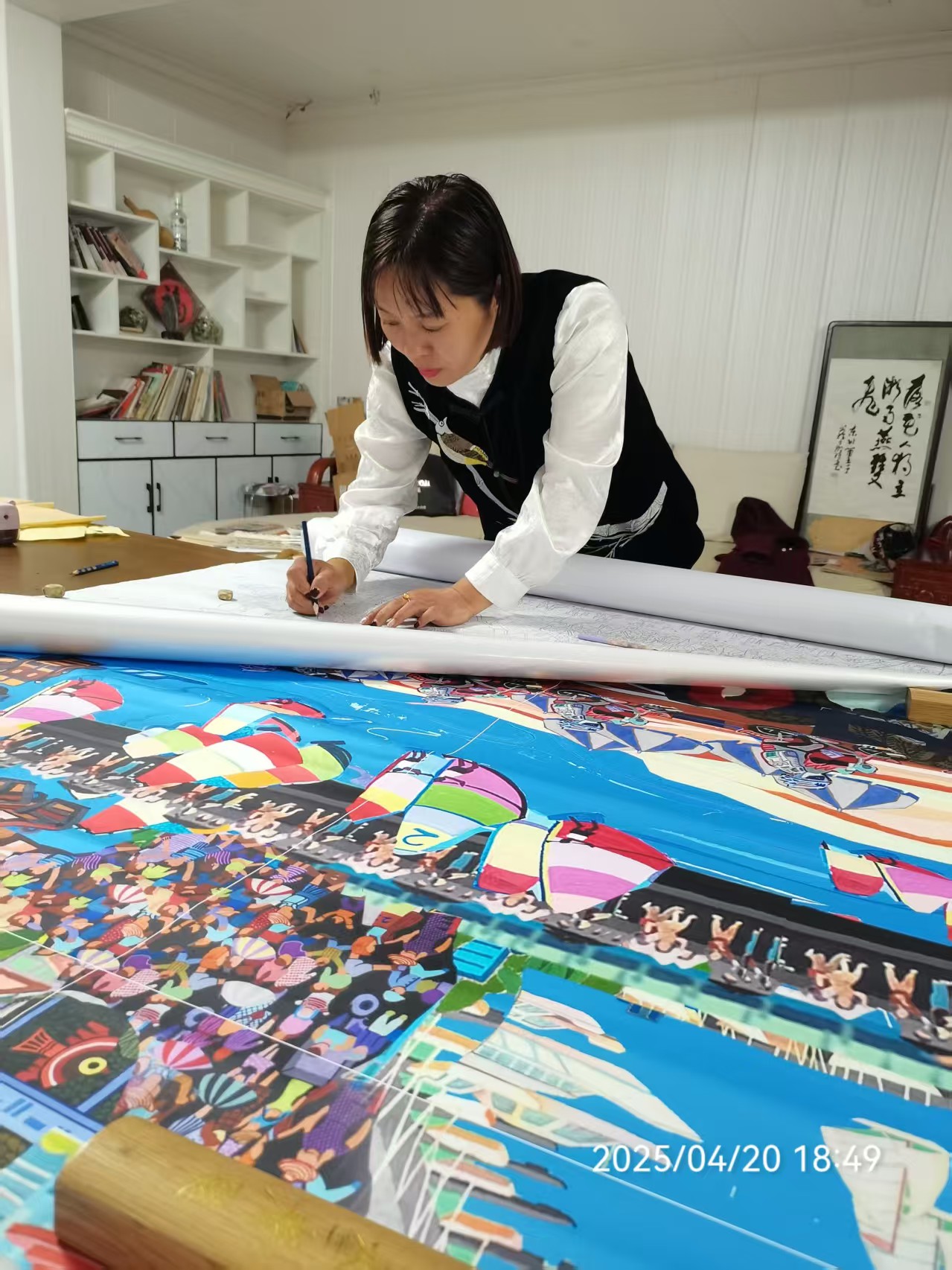 6月27日于上海中华艺术宫盛大开幕的首届中国乡土绘画国展上,一幅展现齐鲁气魄的巨幅农民画《好客山东·魅力青岛》成为全场瞩目的焦点。作为核心画家之一,太阳成城集团tyc234cc李敏老师全程深度参与了这幅国家级特邀作品的绘制,其艺术才华与辛勤付出为作品的成功做出了不可替代的贡献,镌刻在中国美术最高展示平台的光荣榜上。