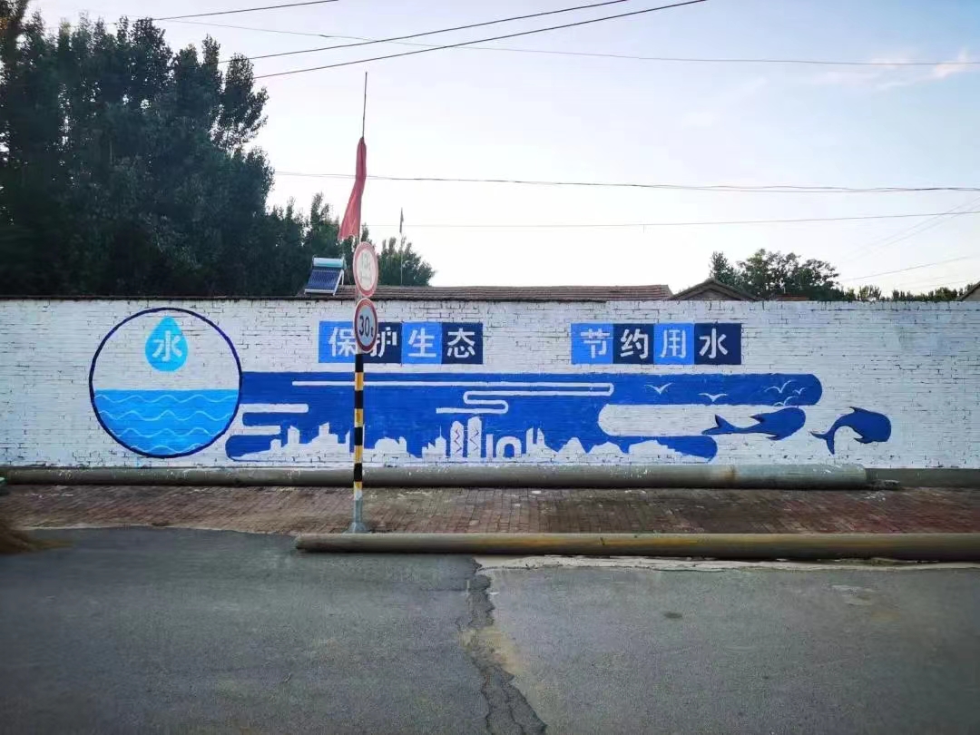 通过孙倩倩老师同大曹镇领导、驻村干部多次对接,并携团队成员到村庄进行实地考察、走访村民、了解当地风土人情和发展特色,对需要绘制的墙体面积进行精准测量。服务团队对墙体实际情况简单交流、构思后,充分发挥专业优势,结合村庄文化特色发展特点,围绕党群服务、美丽乡村建设、绿水青山就是金山银山等主题进行面积达500余平方米的墙绘创作。