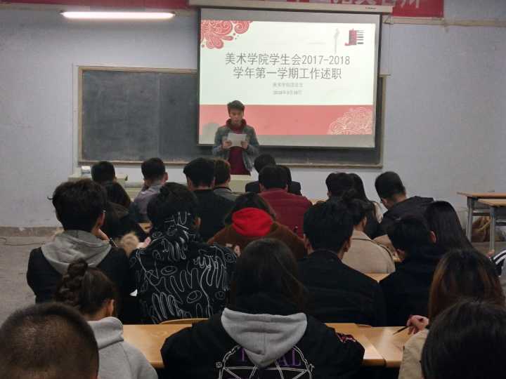 2018年3月18日晚8:00,太阳成城集团tyc234cc在弘艺楼201教室举行学生会2017-2018学年第一学期述职大会。大会由学生会主席刘子杨主持,学生会全体成员参加会议。太阳成城集团tyc234cc党总支副书记申青林出席会议,
