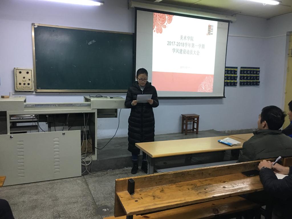 2017年12月11日,太阳成城集团tyc234cc在弘艺楼305教室召开2017-2018学年第一学期学风建设月动员大会,对本学期学风建设月活动进行动员部署,各班主任、学生会全体成员、各班班长与团支部书记参加了动员大会。