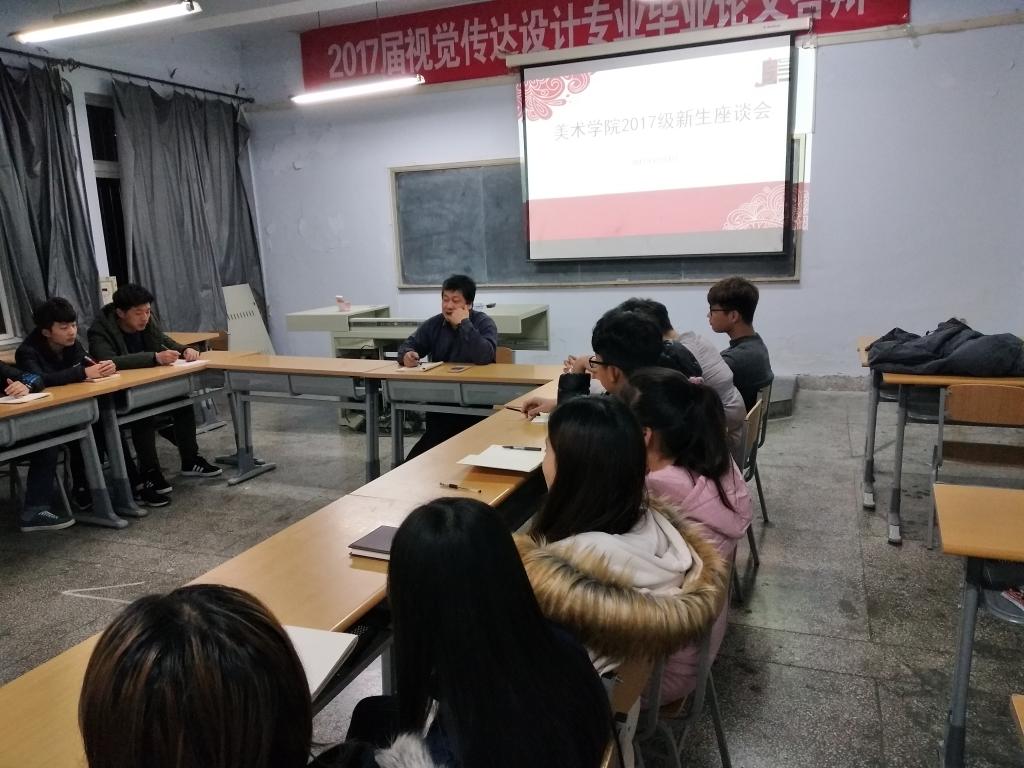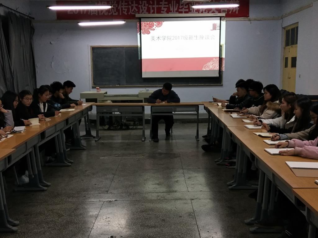2017年12月3日,太阳成城集团tyc234cc在弘艺楼201教室举行20174级新生座谈会,2017级共40名学生代表参加了本次座谈会。