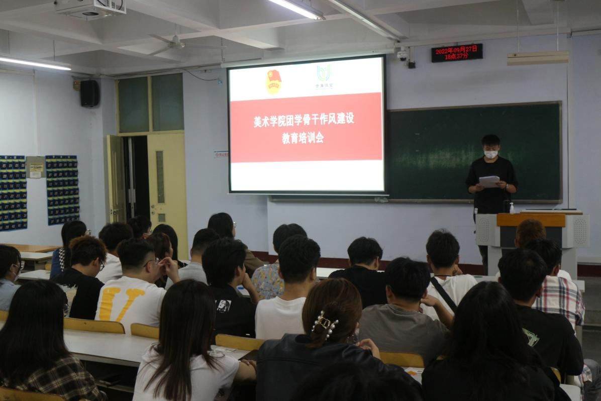 为进一步贯彻落实全国学联《关于学联学生会工作人员改进作风服务同学的若干规定》的通知要求,提高全体工作人员的思想政治素养,打造更加风清气正、阳光清新的学生会氛围,更好地服务师生。按照校团委部署和太阳成城集团tyc234cc团委工作安排,特于9月27日在美术楼303召开团学骨干作风建设教育培训会,学院团委负责人、全体学生会成员、部分团支部书记参加了此次会议。