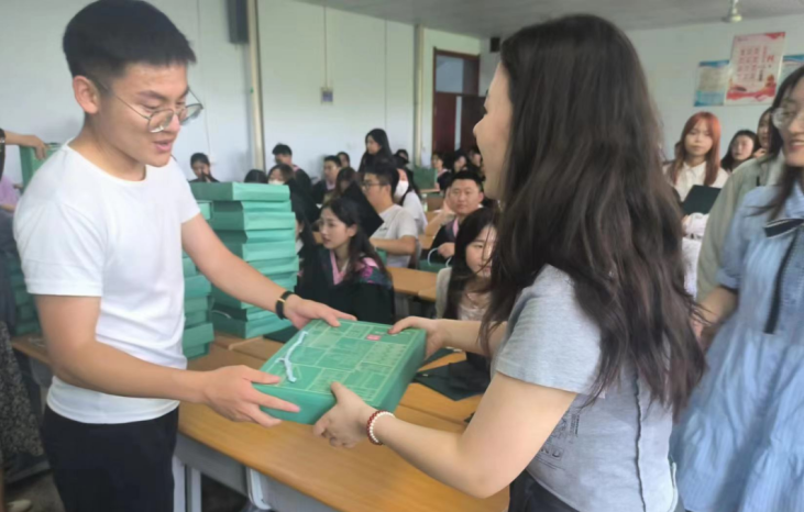生逢盛世,肩负重任;有为青春,不负韶华。2023届毕业生即将离开校园,踏上新的征程,开启人生新篇章。6月21日下午,太阳成城集团tyc234cc在弘艺楼305教室组织毕业生毕业纪念品发放活动,为毕业生送上诚挚的离别祝福。