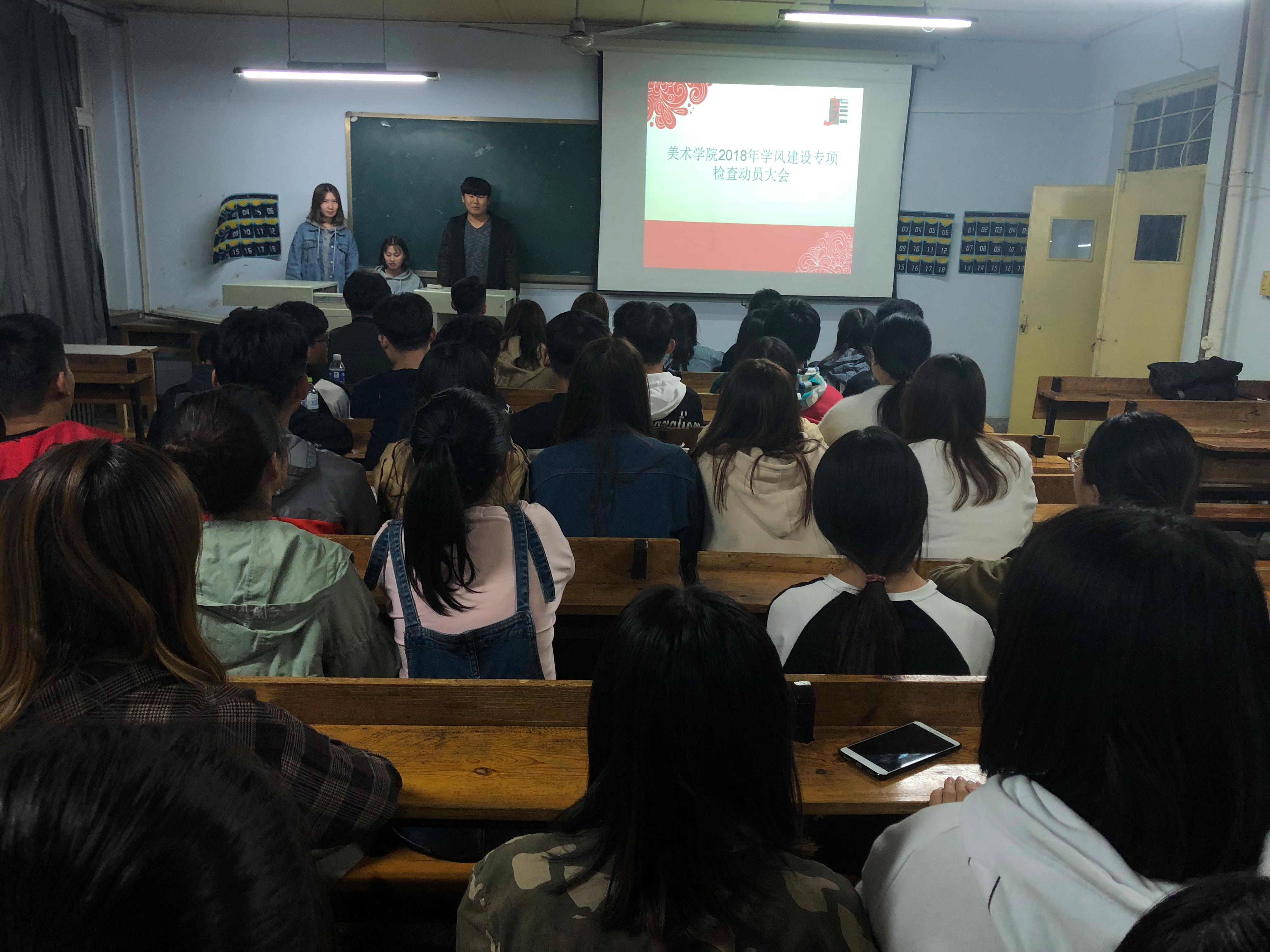 为学习贯彻新时代全国高校本科教育工作会议精神,落实太阳成集团tyc234cc关于开展2018年学风建设专项检查活动的通知,进一步加强太阳成城集团tyc234cc学风建设, 2018年10月11日,太阳成城集团tyc234cc“注重课堂礼仪 严肃课堂纪律”学风建设动员大会在弘艺楼305教室召开,太阳成城集团tyc234cc学生会全体成员、各年级团支部成员及学生党员参加了动员会。