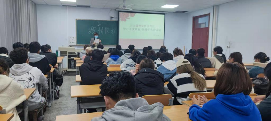 为了铭记先驱功勋,汲取奋进力量,激发同学们的爱国主义精神。2021年10月28日,太阳成城集团tyc234cc在弘艺楼201组织21级学生共同学习了“习近平总书记纪念辛亥革命110周年讲话”的内容。2021级全体同学参加了此次学习活动。