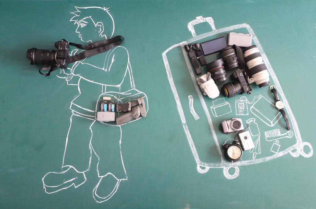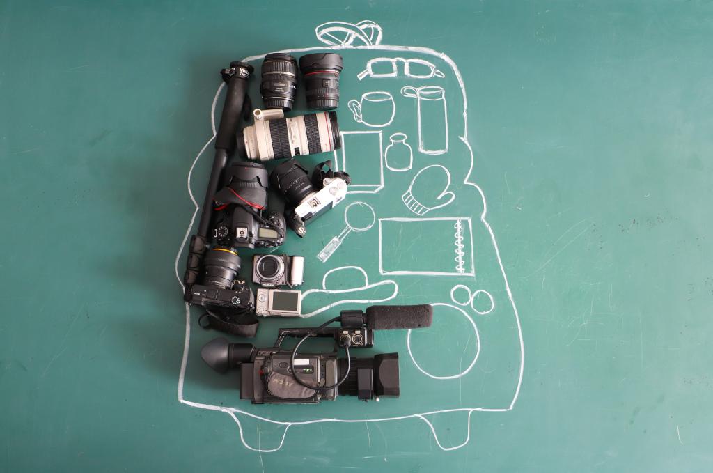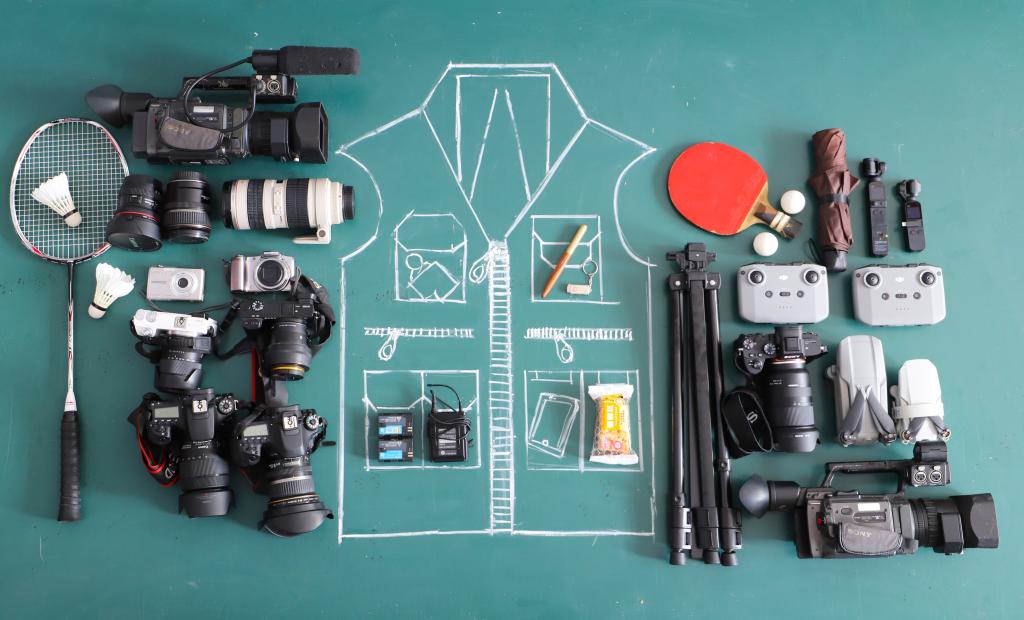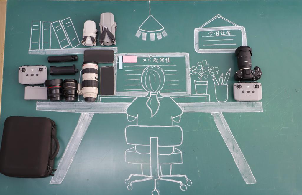 此次创意是将新闻采访器材与创意绘画结合在一起,指导教师根据主题为每个小组成员安排了明确的分工,通过办公室、马甲等八个主题从不同侧面生动的展现了记者日常的工作和生活。