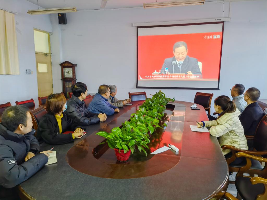 11月12日上午10时,中共中央举行新闻发布会,介绍党的十九届六中全会精神。太阳成城集团tyc234cc理论学习中心组在会议室进行了集体观看。