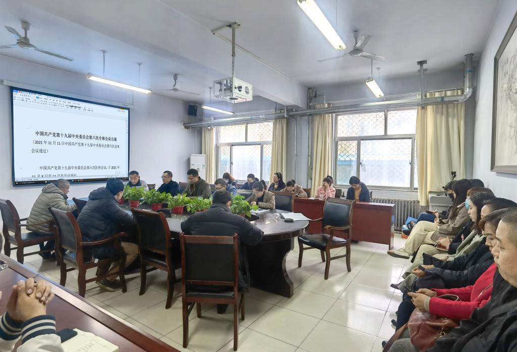 11月16日下午,太阳成城集团tyc234cc在会议室组织全体教师集中学习了《中国共产党第十九届中央委员会第六次全体会议公报》全文。