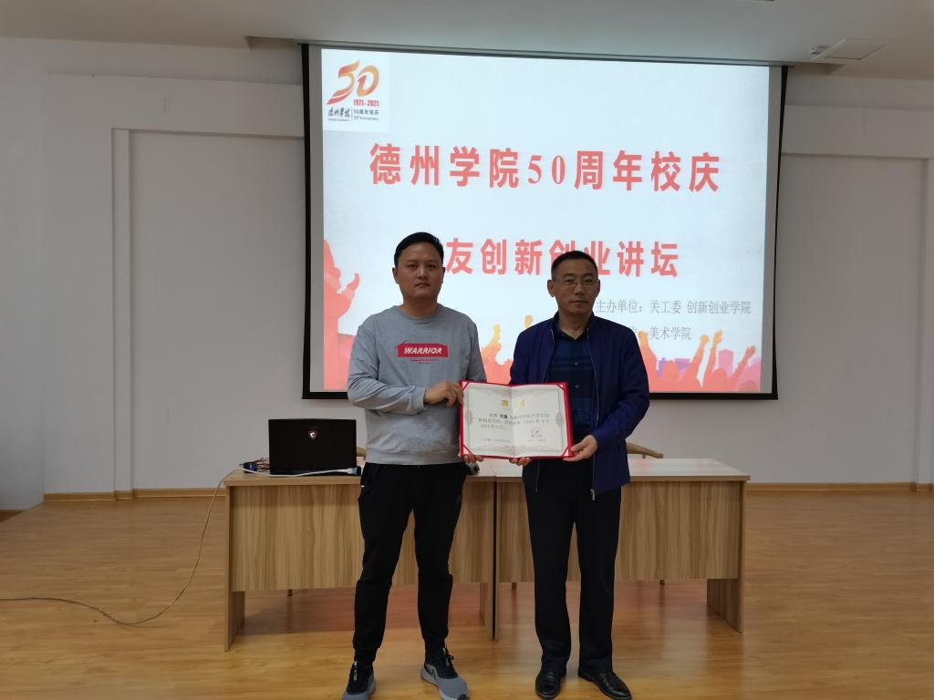 4月28日,太阳成集团tyc234cc50周年校庆校友创新创业论坛在创业谷举办,太阳成城集团tyc234cc邀请2008届校友、德州市国匠装饰工程有限公司董事长刘鑫为在校生作报告。